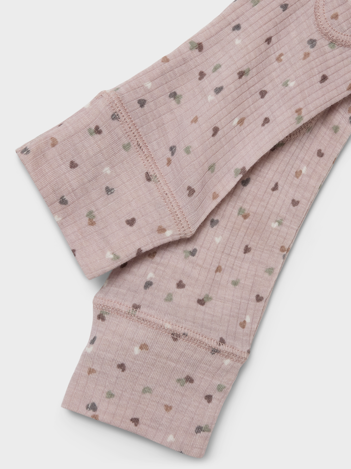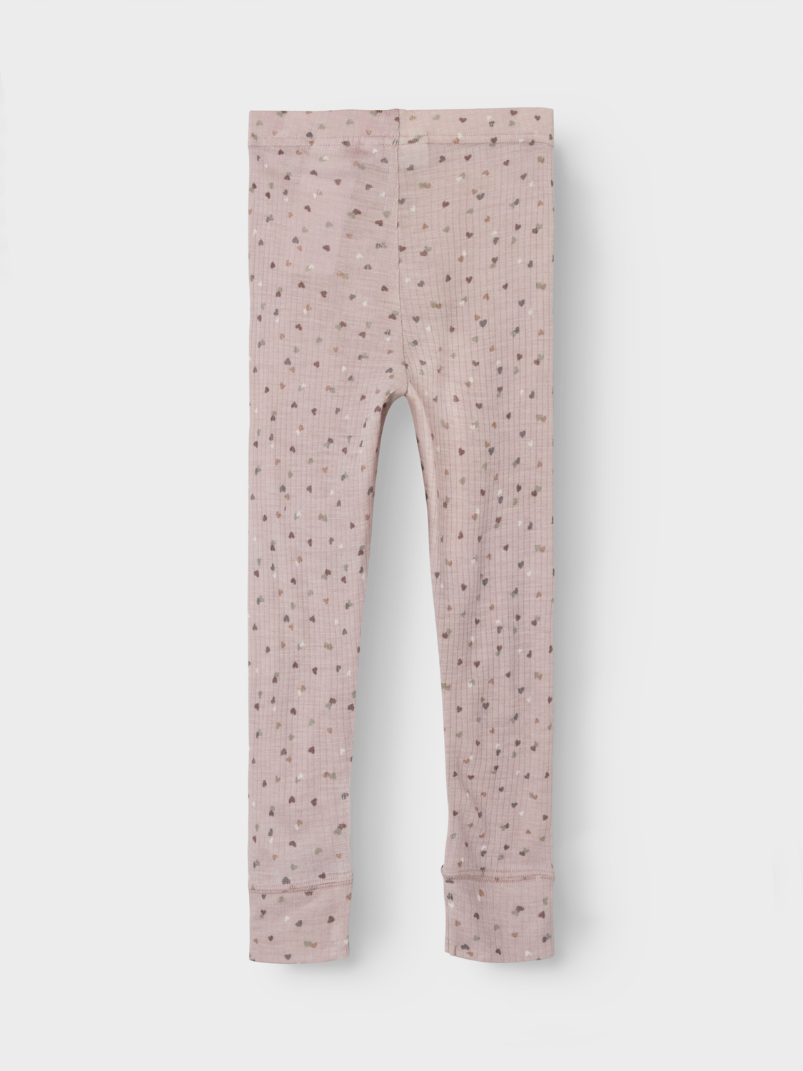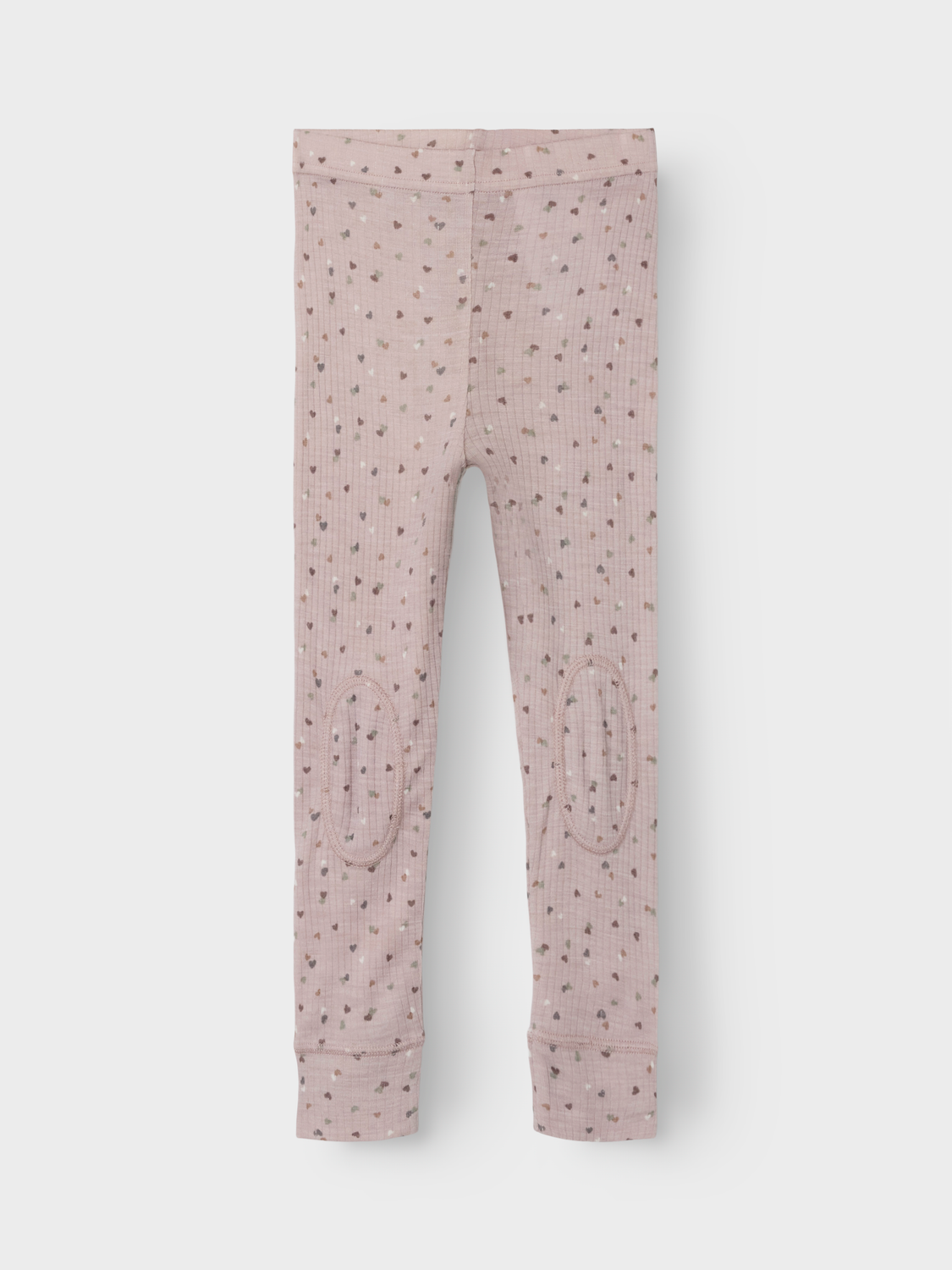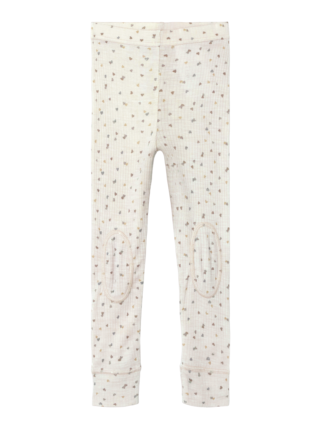 Legg til en stilren og komfortabel touch til barnets garderobe med NMFWOMI WO/MO leggings. Laget av en blanding av merinoull og modal, gir disse leggingsene både varme og mykhet, perfekt for hverdagsbruk.