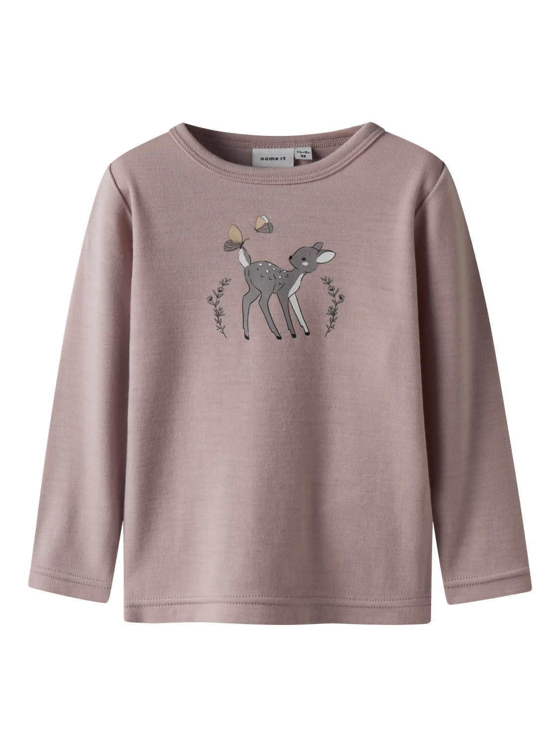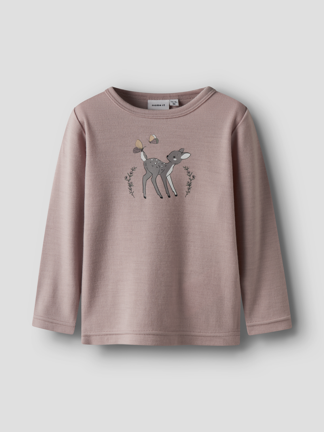 Name It - Nmfwillitus Wool Ls Top - Shadow Gray Deer
