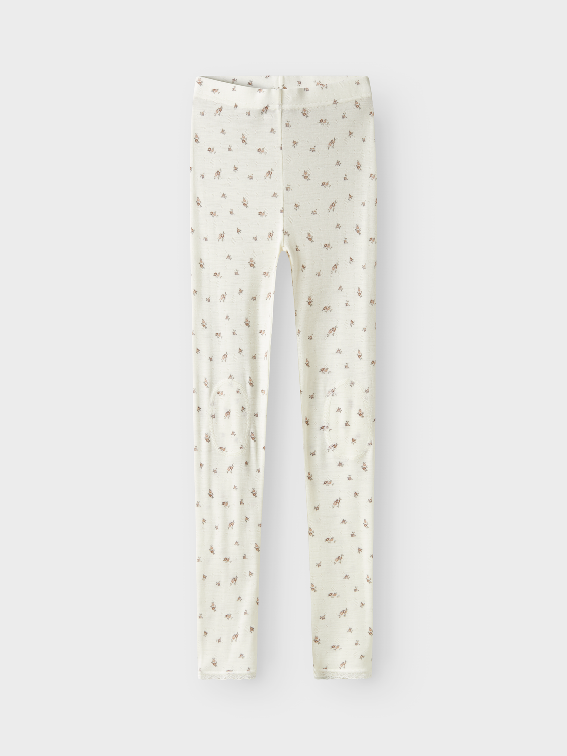Name It - Nkfwang Wool Needle Legging - Snow White Small Flowers