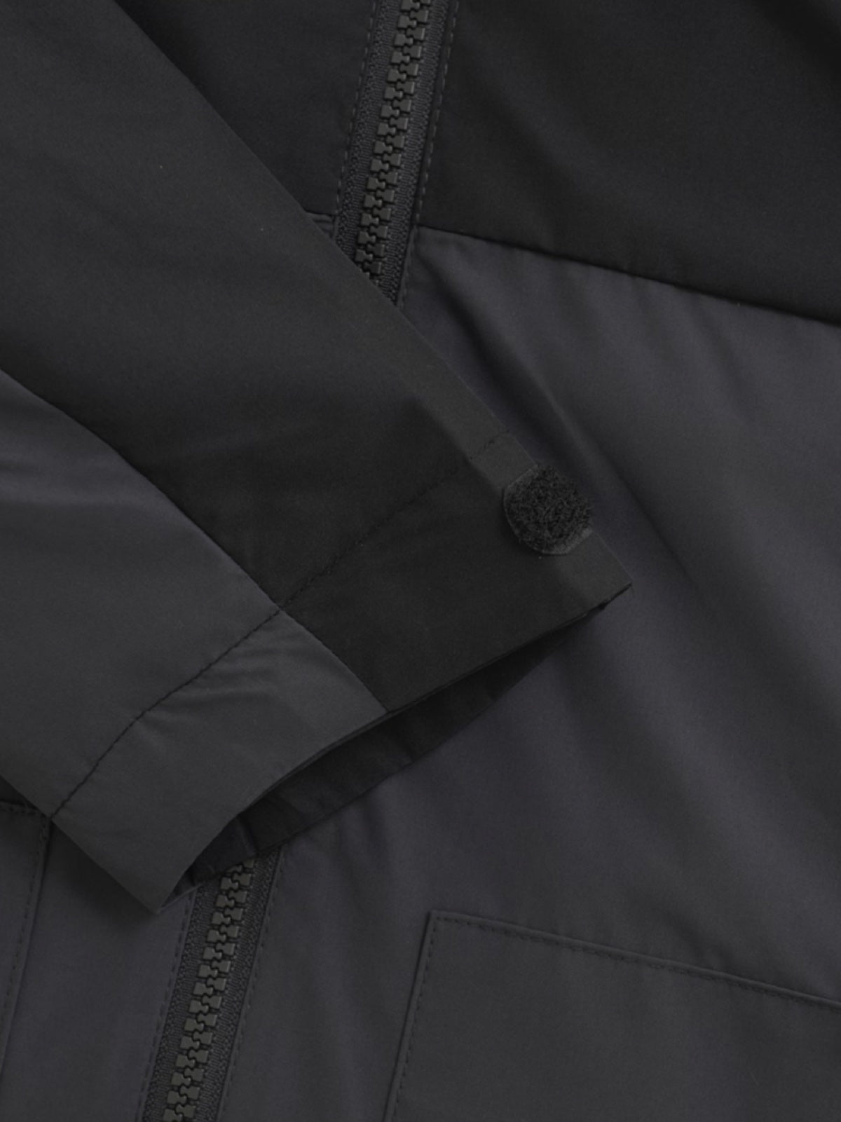 Denne stilige vindjakken med hette kombinerer funksjonalitet og moderne design med en trendy color block-stil. Perfekt for aktive dager utendørs, takket være en vannsøyle på 15 000 mm og en smuss- og vannavvisende overflate behandlet med BIONIC FINISH ECO.