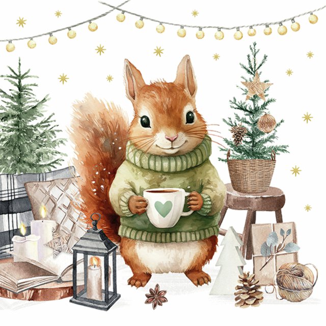 Edelweiss - Napkin Lunsj Deer with Santa hat white -