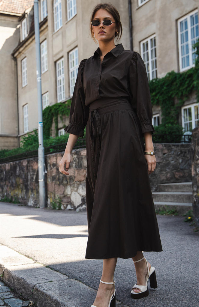 MISSMAYA - Vicky Midi Dress - Antique Black Poplin