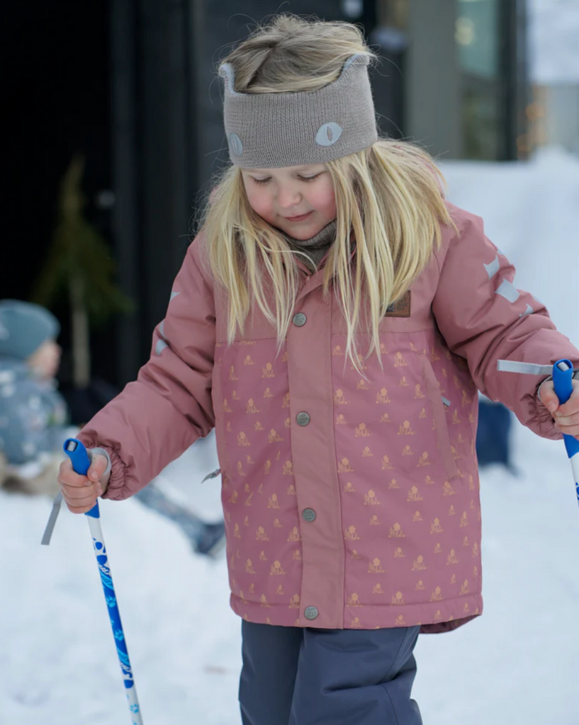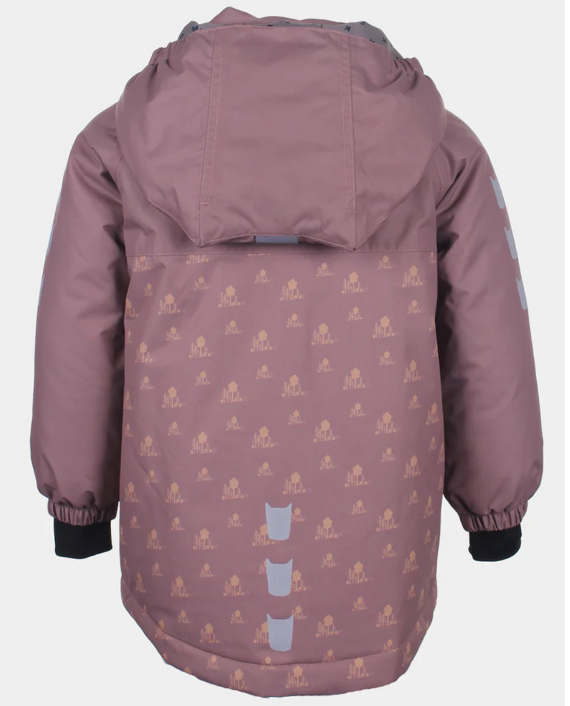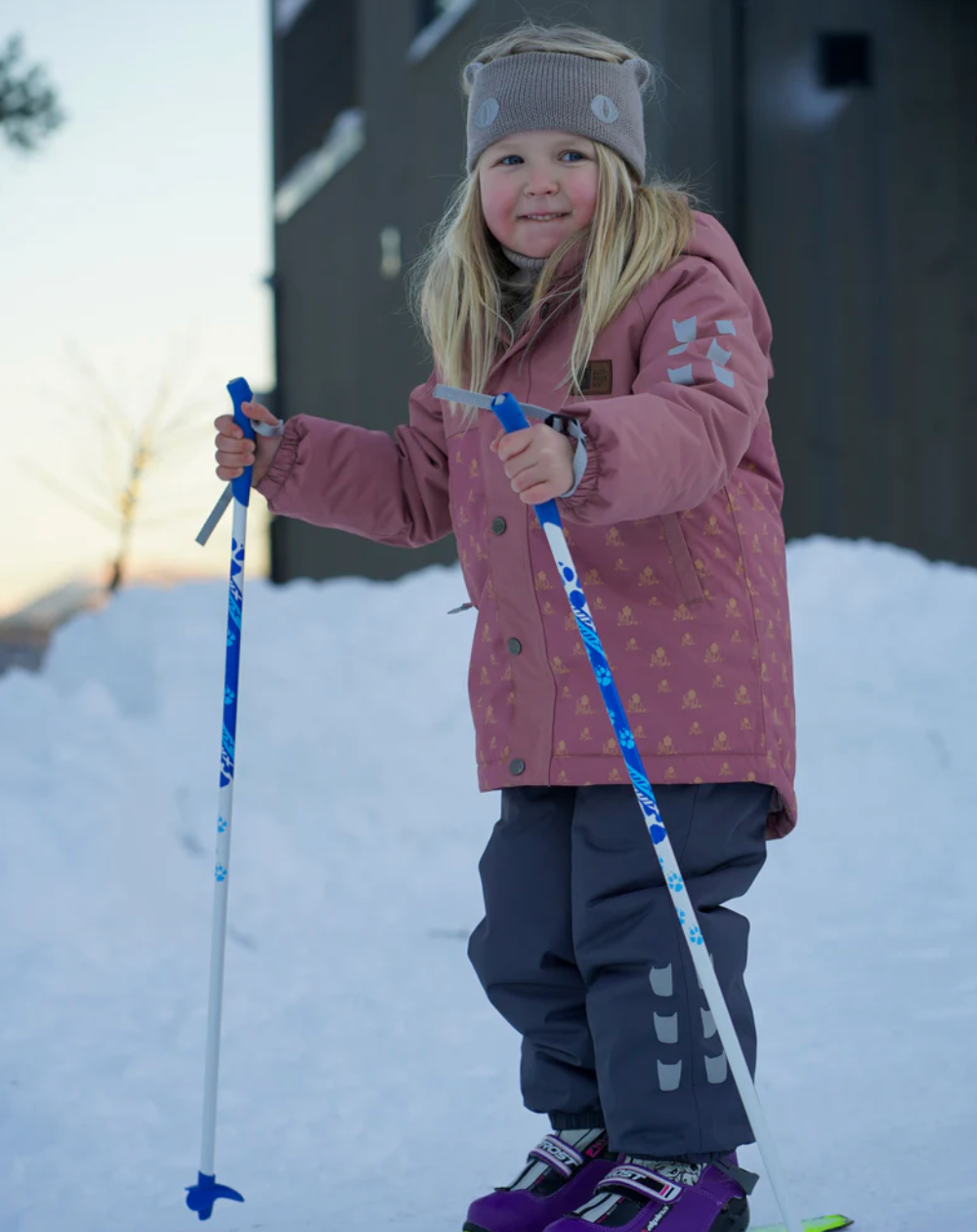 Varm og slitesterk vinterjakke laget for kalde dager. Laget i pustende 100 % nylon med vannsøyle på 12 000 mm og hurtigtørkende vattering, som holder barnet tørt og komfortabelt. Jakken har slitesterke fotstrikk, refleksdetaljer på ermer, rygg og hette, snøstopp på ermene, samt avtagbar og justerbar sikkerhetshette.