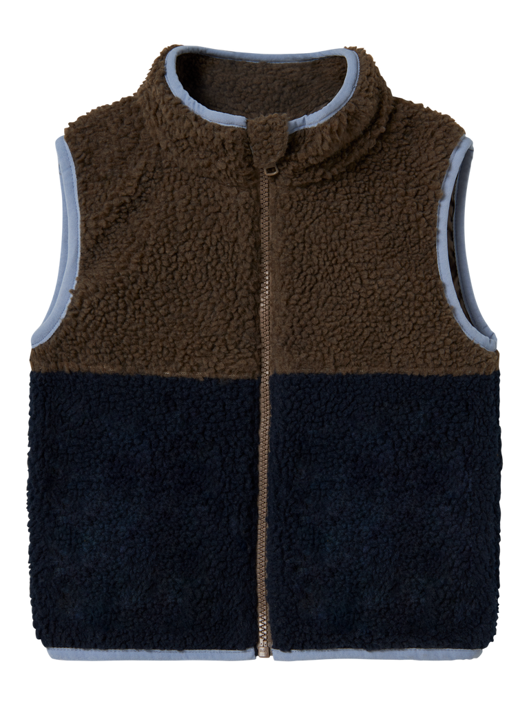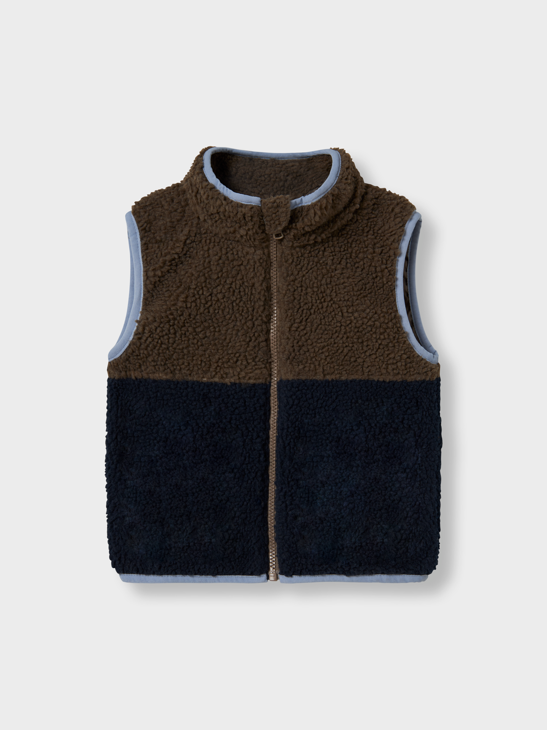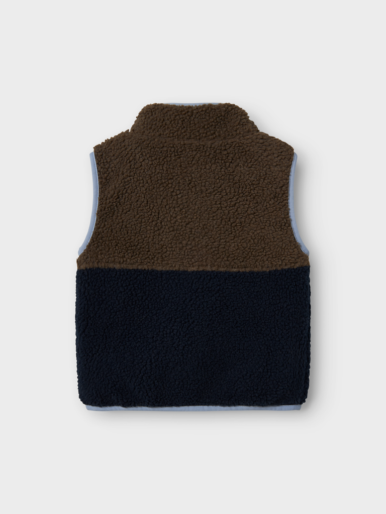 Gi barnet ditt en trendy og komfortabel look med NMMMALL TEDDY VEST2 fra NAME IT. Denne ermeløse vesten er laget av resirkulert polyester og har en høy hals som gir ekstra beskyttelse mot kulden. Den praktiske glidelåslukking gjør det enkelt for barnet å ta den av og på, samtidig som glidelåsbeskytteren sørger for at huden ikke blir irritert.