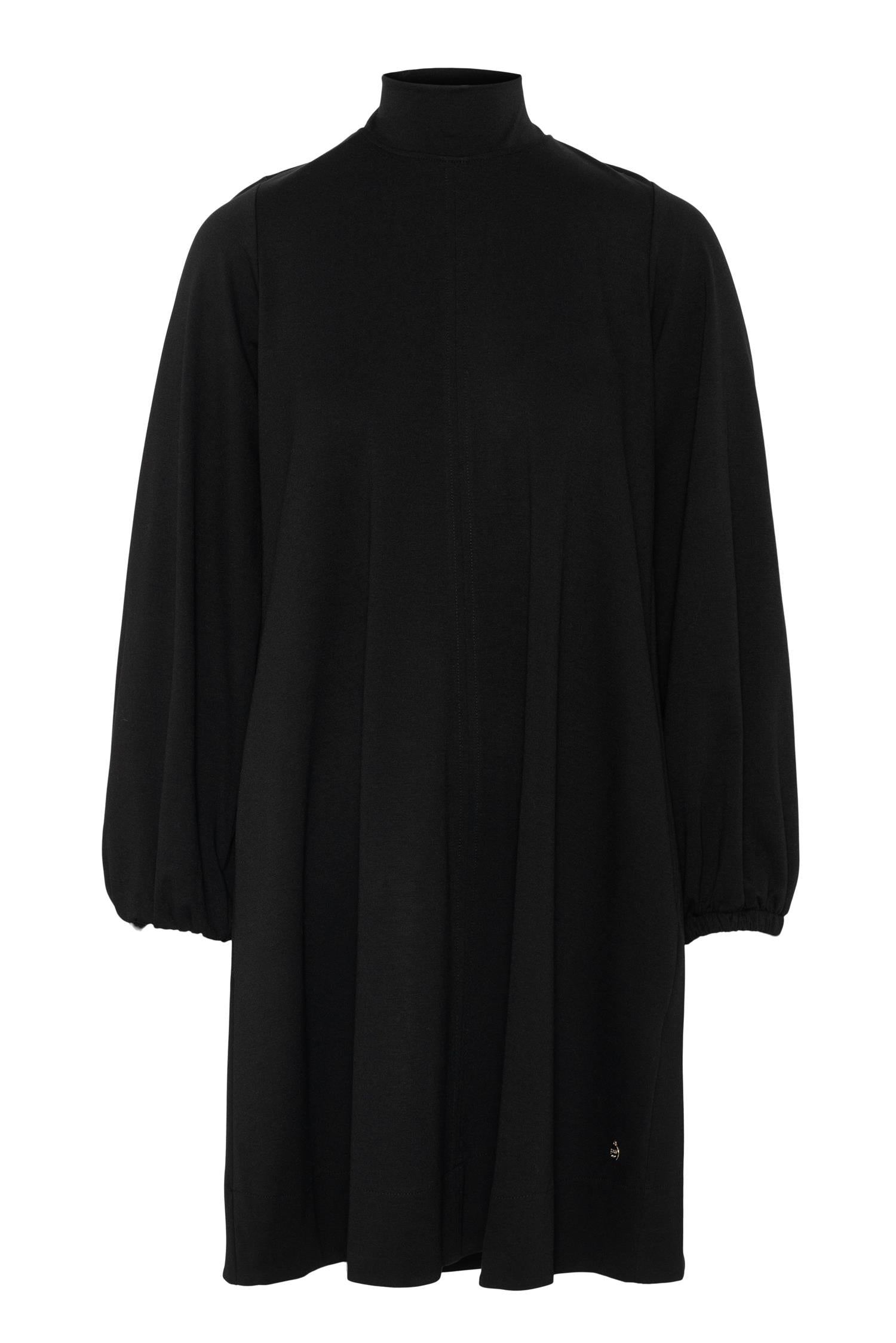 Kjolen har en kort lengde til ovenfor kneet, lange armer med strikk nederst og en noe høyere myk hals. Kan pyntes både opp og ned.