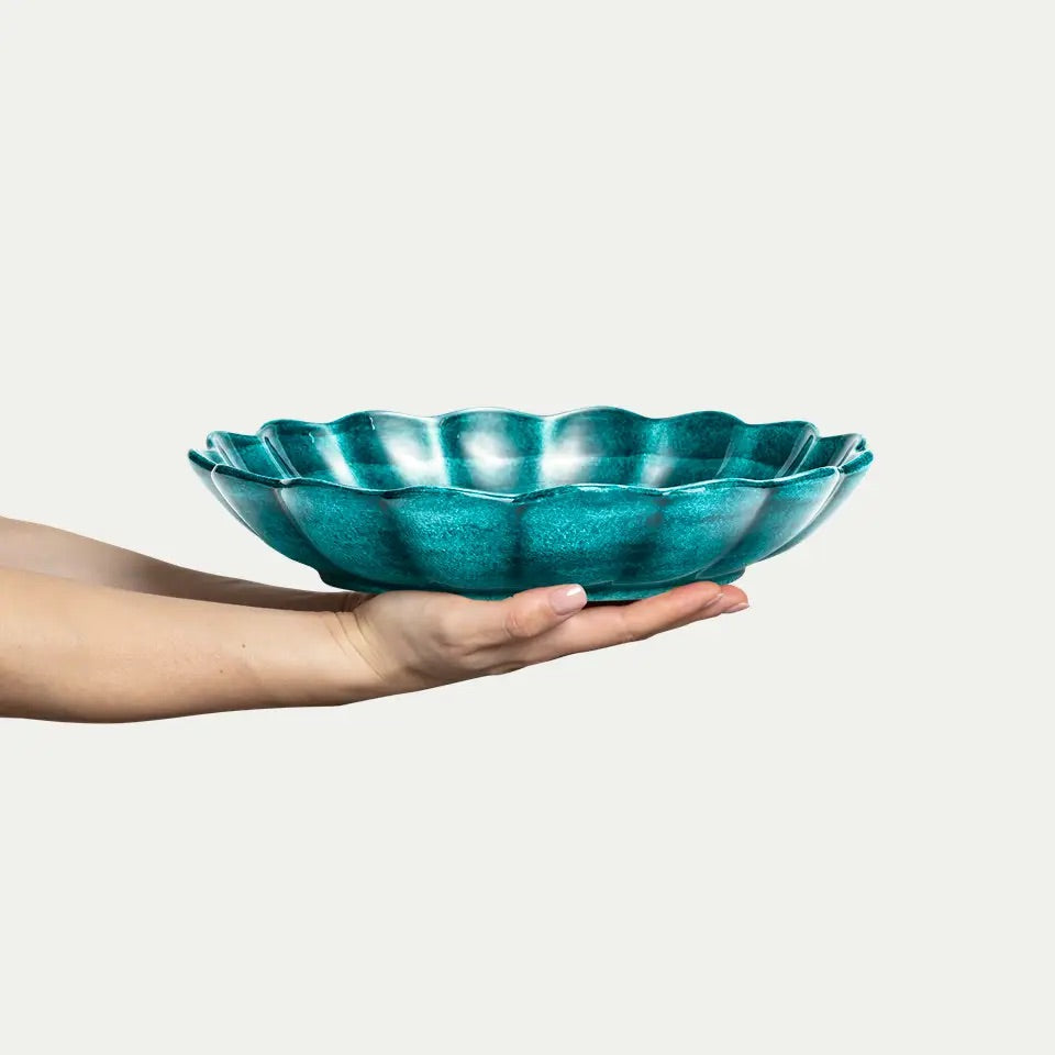 Skål i fargen ocean fra den populære serien, Mateus Oyster. Denne serien er en slager i mangt et hjem. Designet er inspirert fra sjøen og har samme karakteristiske glaserte finish som resten av kolleksjonene til Mateus. Dekk bordet ut fra din personlighet og mix og match iblant kolleksjonene.