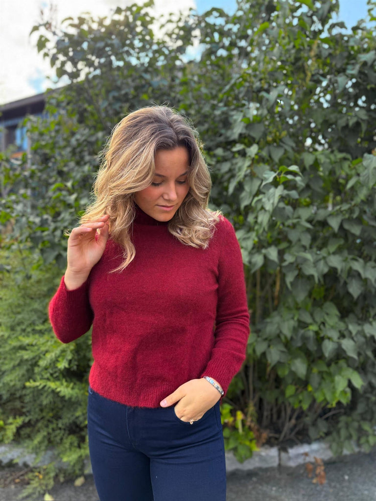 Jade er en vakker strikkegenser laget av 100% raccoon ull, kjent for sin utrolig myke og luksuriøse følelse. Genseren har en rund, høy hals og ribbestrikkede mansjetter, nederkant og hals, som gir en perfekt passform og et stilrent uttrykk. Denne genseren er både tidløs og komfortabel, og passer perfekt til alle sesonger.