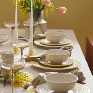 Gi borddekkingen et moderne og innbydende uttrykk med Mateus Stripes-bollen. Serien kombinerer grafiske, organiske striper med et mykt og tidløst formspråk – en perfekt balanse mellom det elegante og det naturlige.