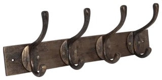 Gi rommet et snev av rustikk sjarm med denne knaggrekken i metall. Den har fire solide knagger og et nostalgisk design som passer perfekt både i entreen, på soverommet eller som et stilig blikkfang på kjøkkenet. Heng opp yttertøy, smykker eller kjøkkenredskaper – her kombineres funksjon og dekor på en naturlig måte.