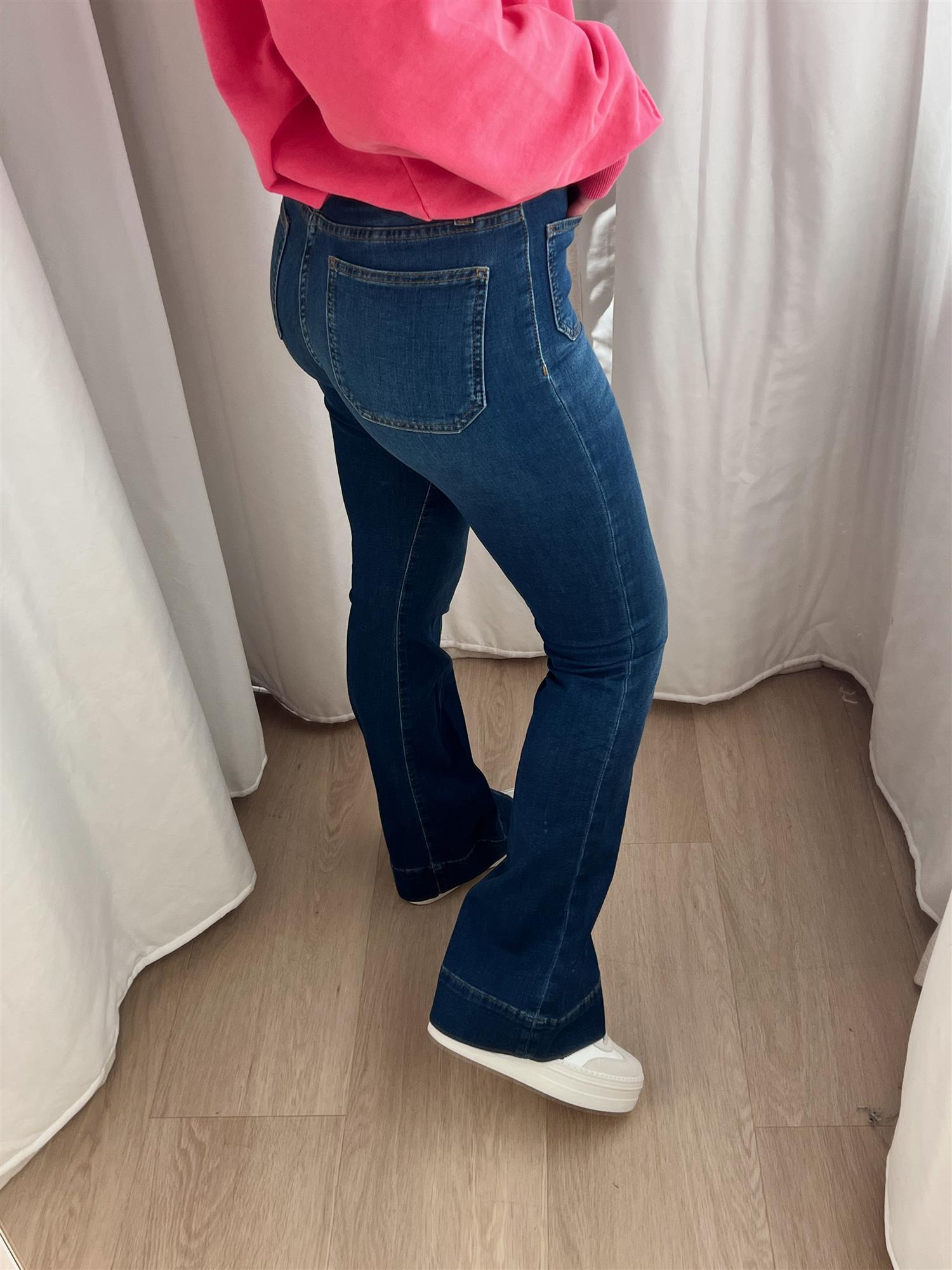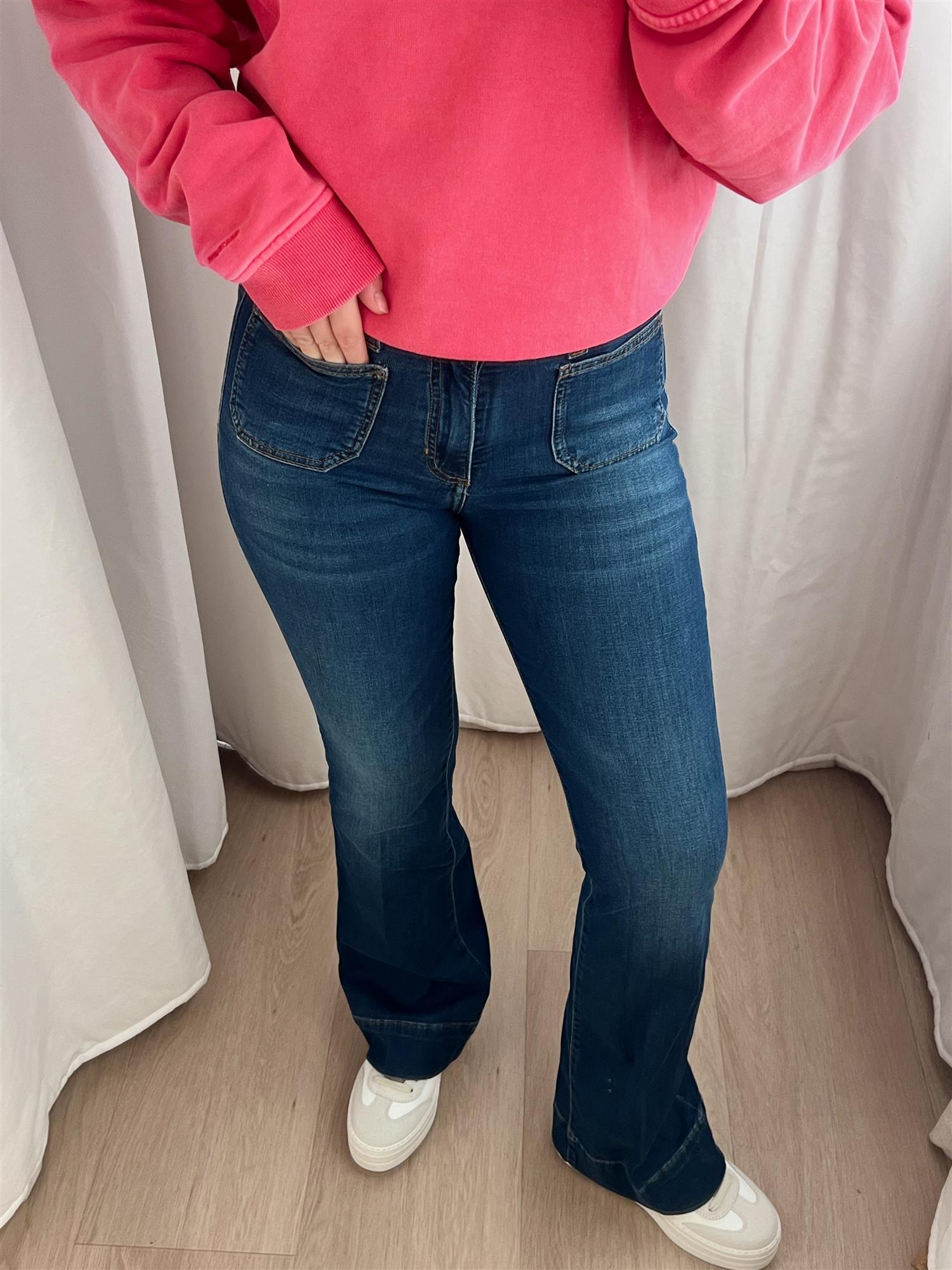 Disse stilige og komfortable buksene i vasket denim fra Denim Studio er en drøm å ha på seg! Med en lett utsvinget passform og god stretch sitter de flatterende og gir maksimal bevegelighet. De røffe lommene i front tilfører detalj til buksen, mens den myke kvaliteten gjør dem perfekte til både hverdags og mer oppkledde anledninger.