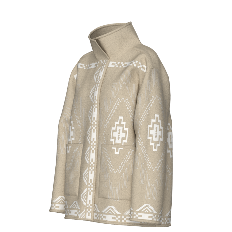 Pioneer Jacket er en eksklusiv og karaktersterk jakke laget i 100 % merinoull av høy kvalitet fra Zegna Baruffa. Den luksuriøse, kokte ullkvaliteten gir både varme og struktur, mens det dekorative jacquard-mønsteret gir jakken et unikt og tidløst uttrykk.