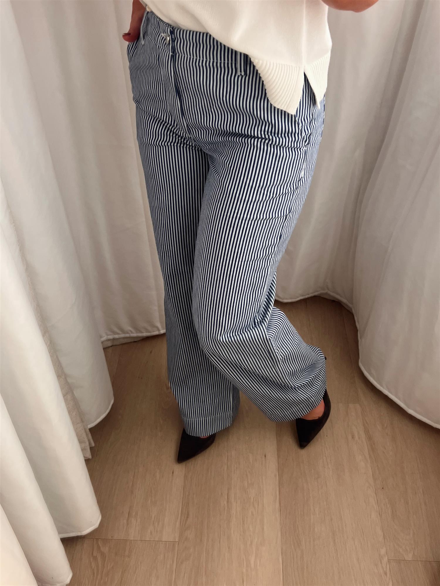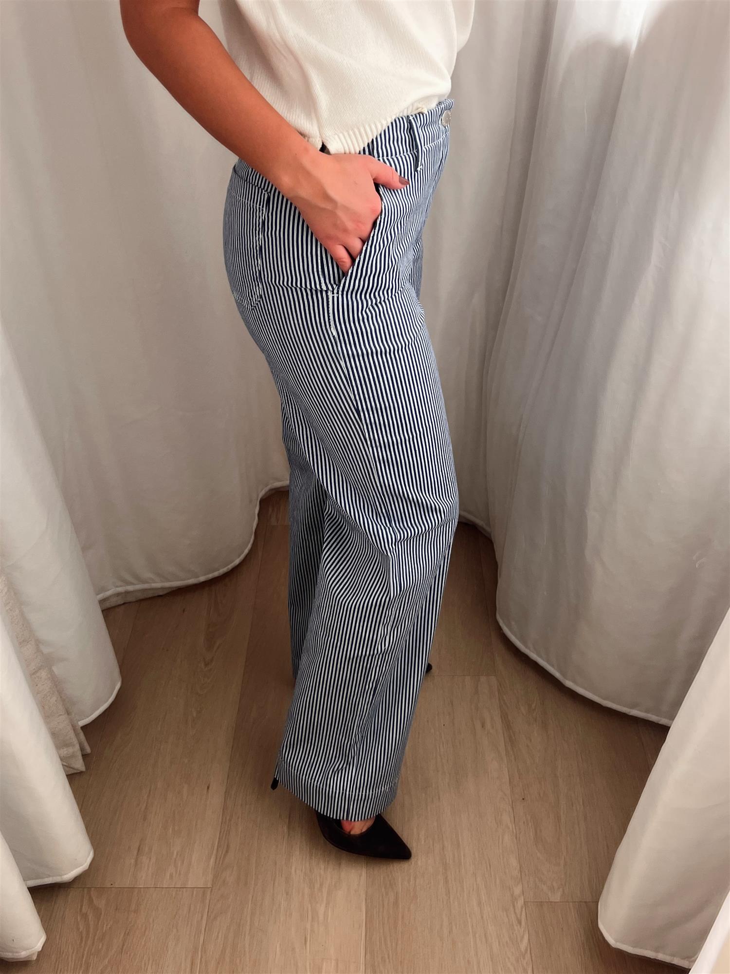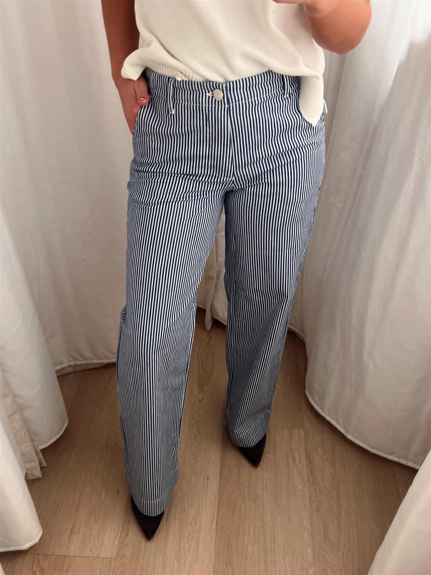 - Farge: Blå stripe - En tidløs og stilren fargekombinasjon som enkelt kan styles med ulike topper.