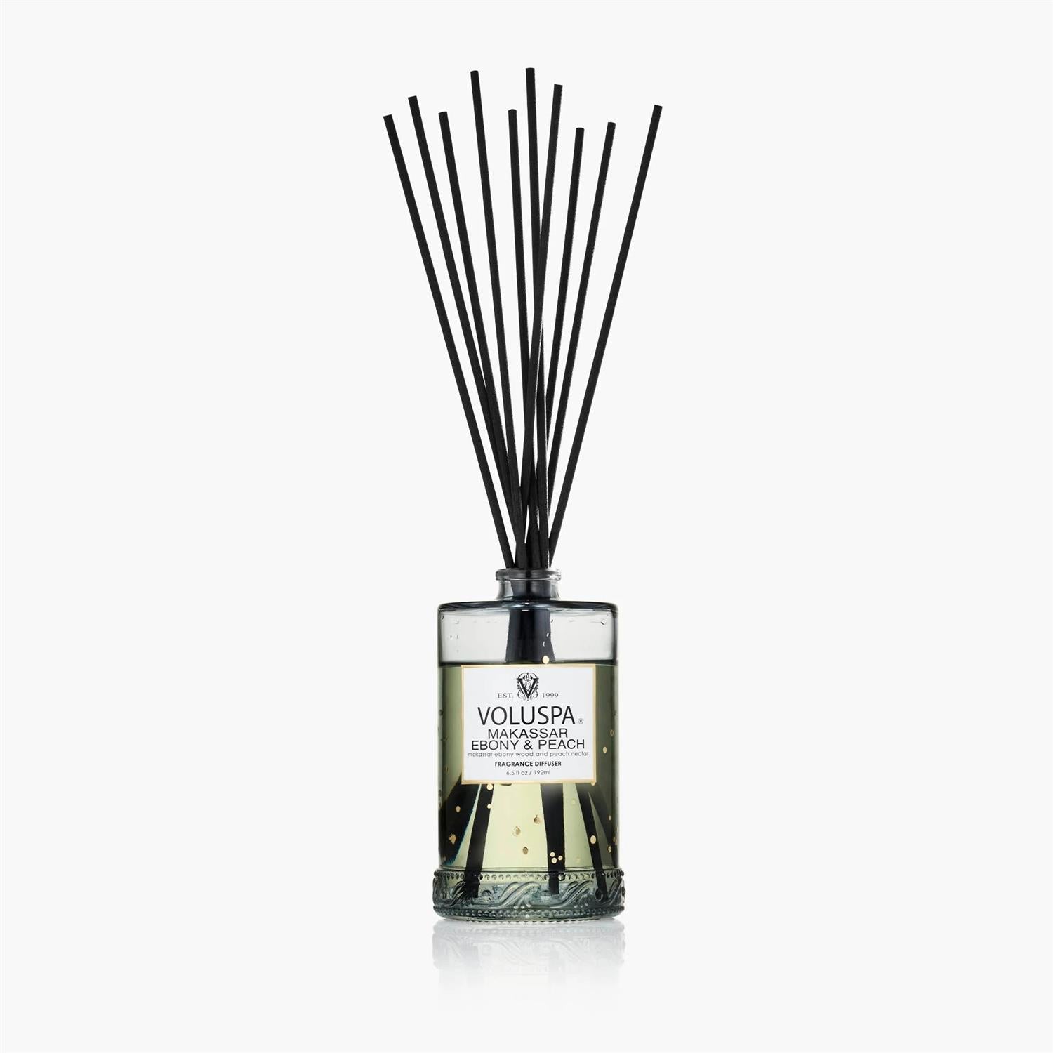 Voluspa - Reed Diffuser 192ml, Makassar Ebony & Peach - Svart