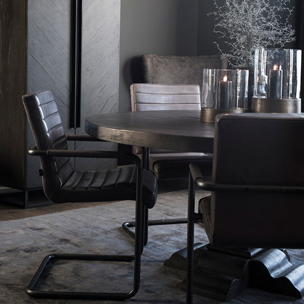 Sabina spisestol er en elegant og komfortabel stol som kombinerer høy kvalitet med tidløs design. Stolen er trukket i eksklusivt skinn og har polstret sete og rygg som gir en enestående sittekomfort – ideell for lange og hyggelige måltider.