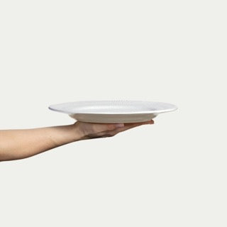 Stripes middagstallerken i hvit fra Mateus. Stripes serien er en behagelig serie med myke former balansert med et grafisk mønster og organiske striper og den karakteristiske glaserte overflate.